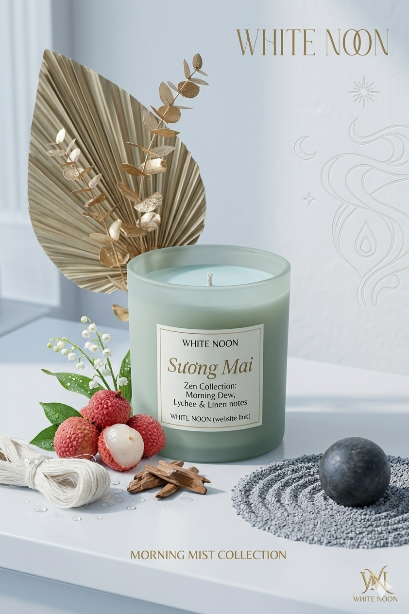 ✨ Mùi hương: Kết hợp giữa cam Bergamot thanh khiết và hoa Linh Lan dịu nhẹ, Sương Mai mang đến cảm giác thư thái tuyệt đối. ✨ Không gian: Chỉ cần đốt lên, bạn sẽ như đang lạc vào khu vườn ban mai rợp bóng sương đêm.